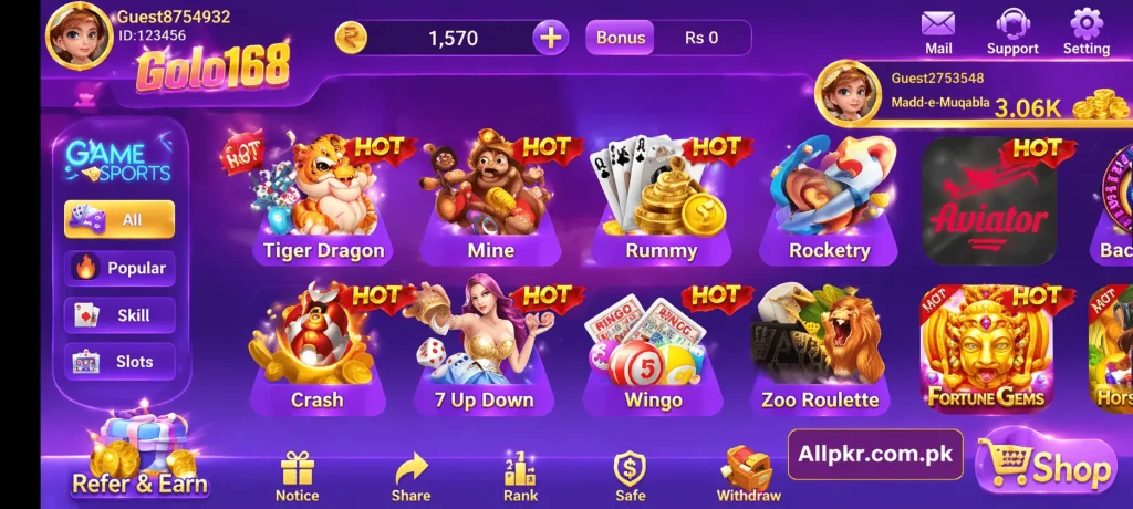 Golo 168 Game is quickly gaining popularity in Pakistan as a mobile app that lets players enjoy a variety of games while earning real money. The app offers a wide range of games, from slots and poker to popular card games like Teen Patti and mini-games, all designed to be easy to play for both beginners and experienced gamers. Players can withdraw their earnings easily through local payment methods making the whole process simple and accessible.